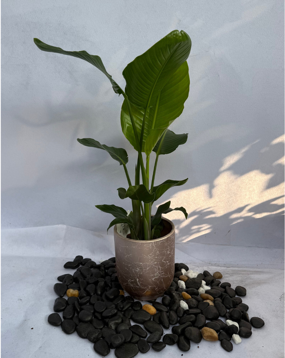 Elevate your space with the stunning Bird of Paradise (Strelitzia), famous for its large tropical leaves and bold, architectural look. This plant instantly adds a luxurious, resort-style feel to any room and thrives beautifully in bright indoor spaces.